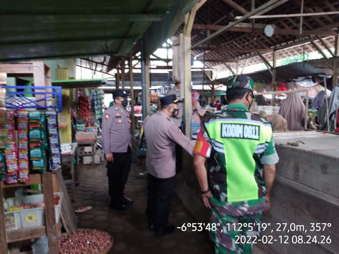 Polres Tuban, Polsek Palang Polres Tuban Gabungan dengan TNI dan Satpolpp melaksanakan Giat yustisi dan penegakkan PPKM Darurat kepada Pengunjung dan penjual di pasar Kelurahan Panyuran Kecamatan Palang Kabupaten Tuban, Pada hari Sabtu (12/02/2022).
