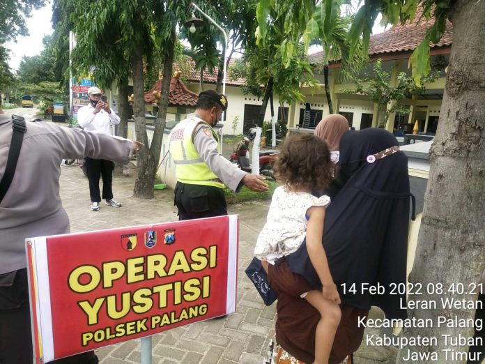 seopini.com – PolresTubanPoldaJatim Polres Tuban, Polsek Palang Polres Tuban Gabungan dengan TNI dan Satpolpp melaksanakan Giat yustisi dan penegakkan PPKM Darurat Level Dua,kepada masyarakat pengguna Jalan Raya Desa Leranwetan depan Balai Desa Leranwetan Kecamatan Palang Kabupaten Tuban, Pada hari Senin (14/02/2022).