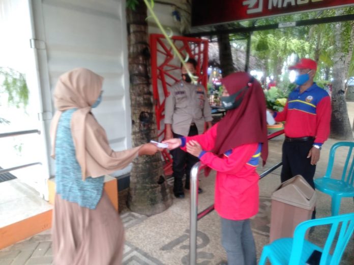 Dengan Menggunakan Pengeras suara berjalan kaki di seluruh area Tempat wisata pantai kelapa untuk memberikan Himbauan Protokol Kesehatan, dan wajib mengunakan Masker, yang bertujuan mendisiplinkan masyarakat untuk mematuhi Inpres ,Perda ,dan Perbup Kab Tuban No. 65 Tahun 2020,guna melakukan pencegahan dan memutus mata rantai penyebaran virus Covid 19.