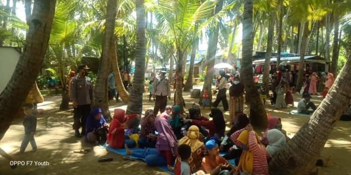 POLSEK PALANG MELAKSANAKAN GIAT YUSTISI DAN HIMBAUAN PROKES DI TEMPAT WISATA PANTAI KELAPA KEL PANYURAN