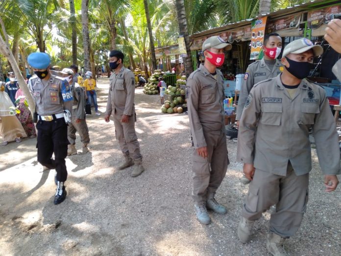 Dengan Menggunakan Pengeras suara berjalan kaki di seluruh area Tempat wisata pantai kelapa untuk memberikan Himbauan Protokol Kesehatan, dan wajib mengunakan Masker, yang bertujuan mendisiplinkan masyarakat untuk mematuhi Inpres ,Perda ,dan Perbup Kab Tuban No. 65 Tahun 2020,guna melakukan pencegahan dan memutus mata rantai penyebaran virus Covid 19.