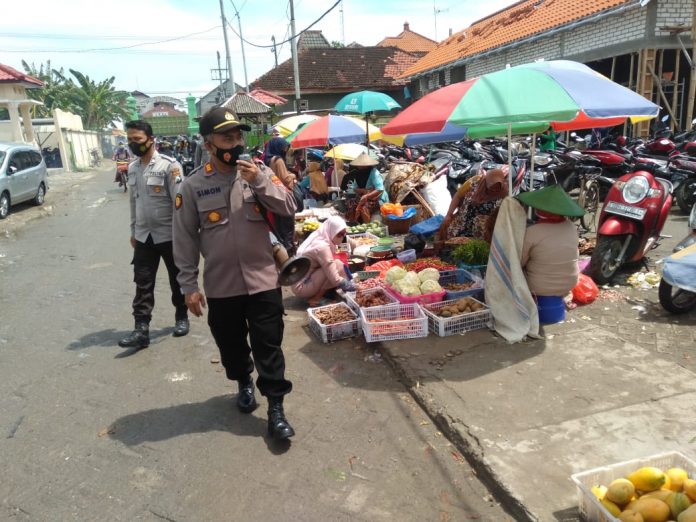 Dengan Menggunakan Pengeras suara berjalan kaki kelorong lorong Pasar untuk memberikan Himbauan Protokol Kesehatan, dan wajib mengunakan Masker, yang bertujuan mendisiplinkan masyarakat untuk mematuhi Inpres ,Perda ,dan Perbup Kab Tuban No. 65 Tahun 2020,dan peraturan pemerintah tentang pemberlakuan PPKM bersekala mikro,guna melakukan pencegahan dan memutus mata rantai penyebaran virus Covid 19.