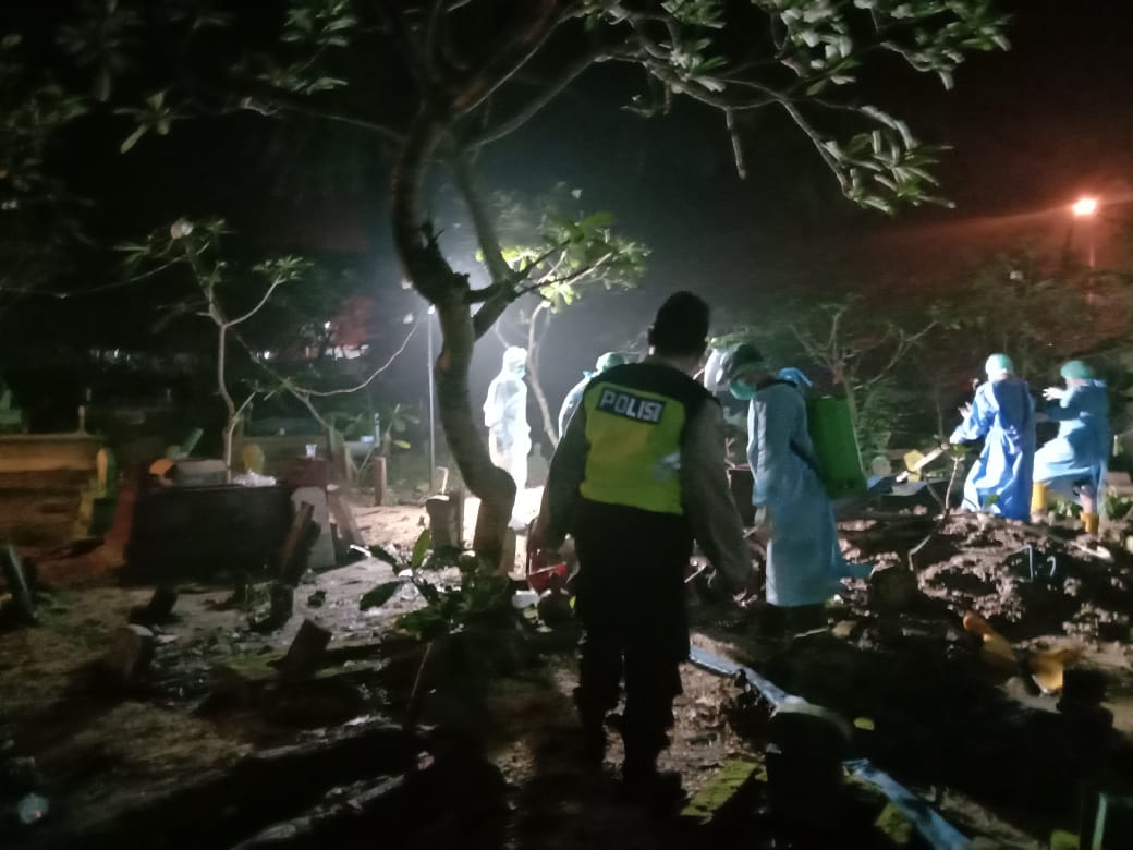 seopini.com-polrestubanpoldajatim Kapolsek Plumpang AKP Wahyu Dwi Waluyo, S.H. beserta anggota dan TNI serta Sat Pol PP Plumpang memberikan pengamanan saat pemakaman salah seorang warga yang diduga covid-19. Warga yang meninggal dunia tersebut diketahui berstatus Postif Covid-19. Kamis pagi, (04/03/2021). Jam 04.30 Wib.