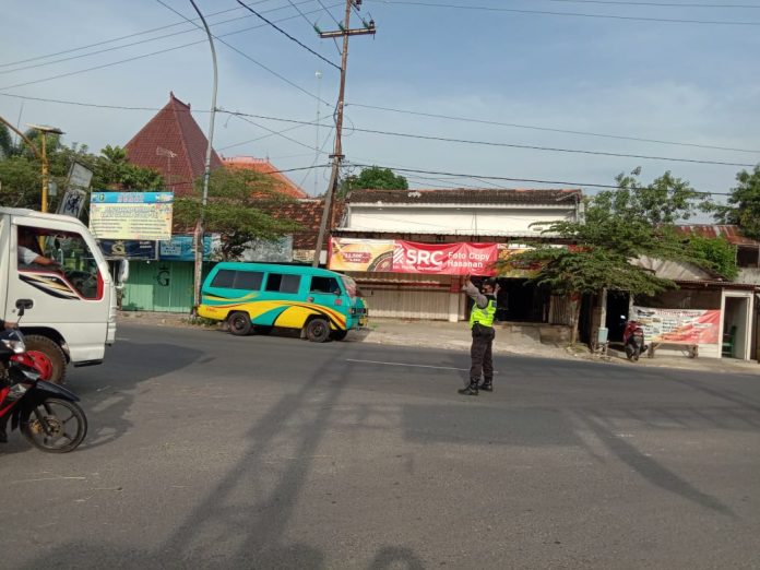 seopini.com-polrestubanpoldajatim Dalam upaya mengantisipasi dan mencegah kemacetan arus lalu lintas Anggota Polsek Plumpang, Polres Tuban Polda Jawa Timur Aiptu Dwi Sampurno, S.H. melaksanakan pengamanan dan pengaturan lalulintas Di pertigaan kecamatan Plumpang. Selasa, (30/03/2021).