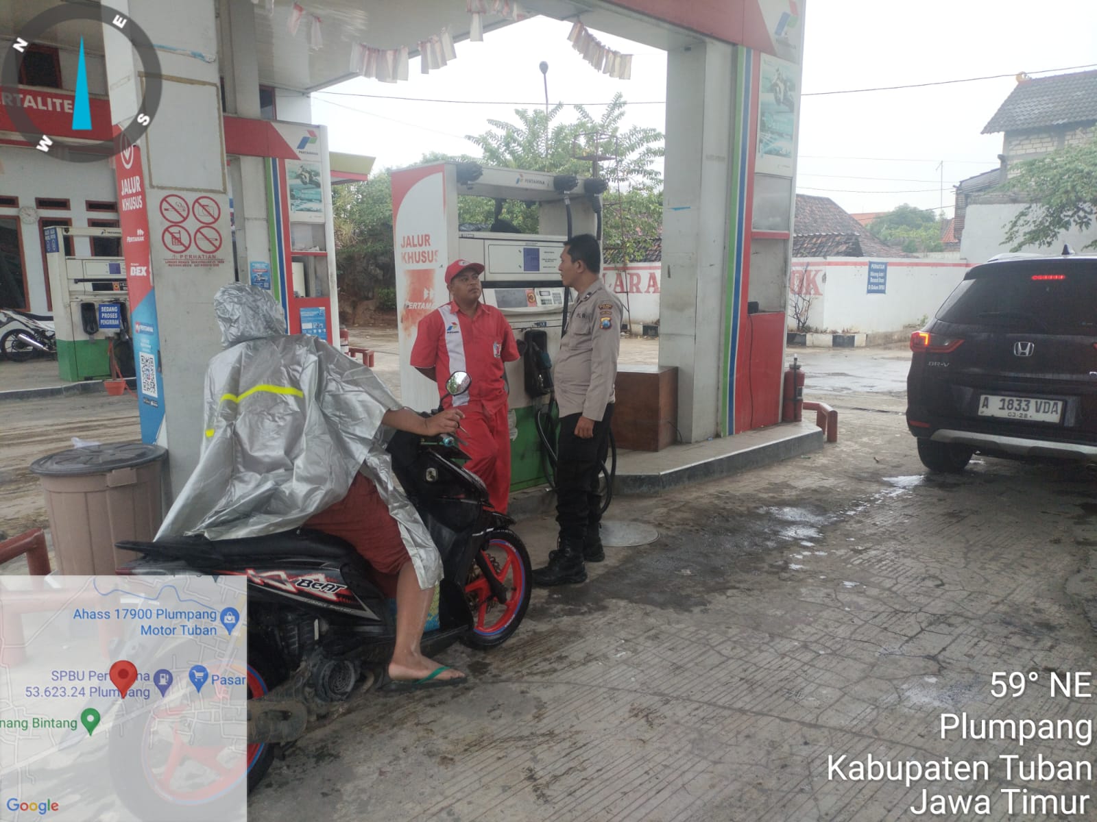 Polsek Plumpang Polres Tuban – Pada hari Selasa (4/2/2025) Pukul 15.34, Polsek Plumpang menggelar patroli di SPBU Plumpang sebagai upaya pencegahan tindak kejahatan. Patroli ini dilakukan untuk memantau situasi di sekitar area SPBU dan memastikan kondisi tetap aman dan kondusif. Anggota polisi berkeliling dan berinteraksi dengan masyarakat yang sedang mengisi bahan bakar.