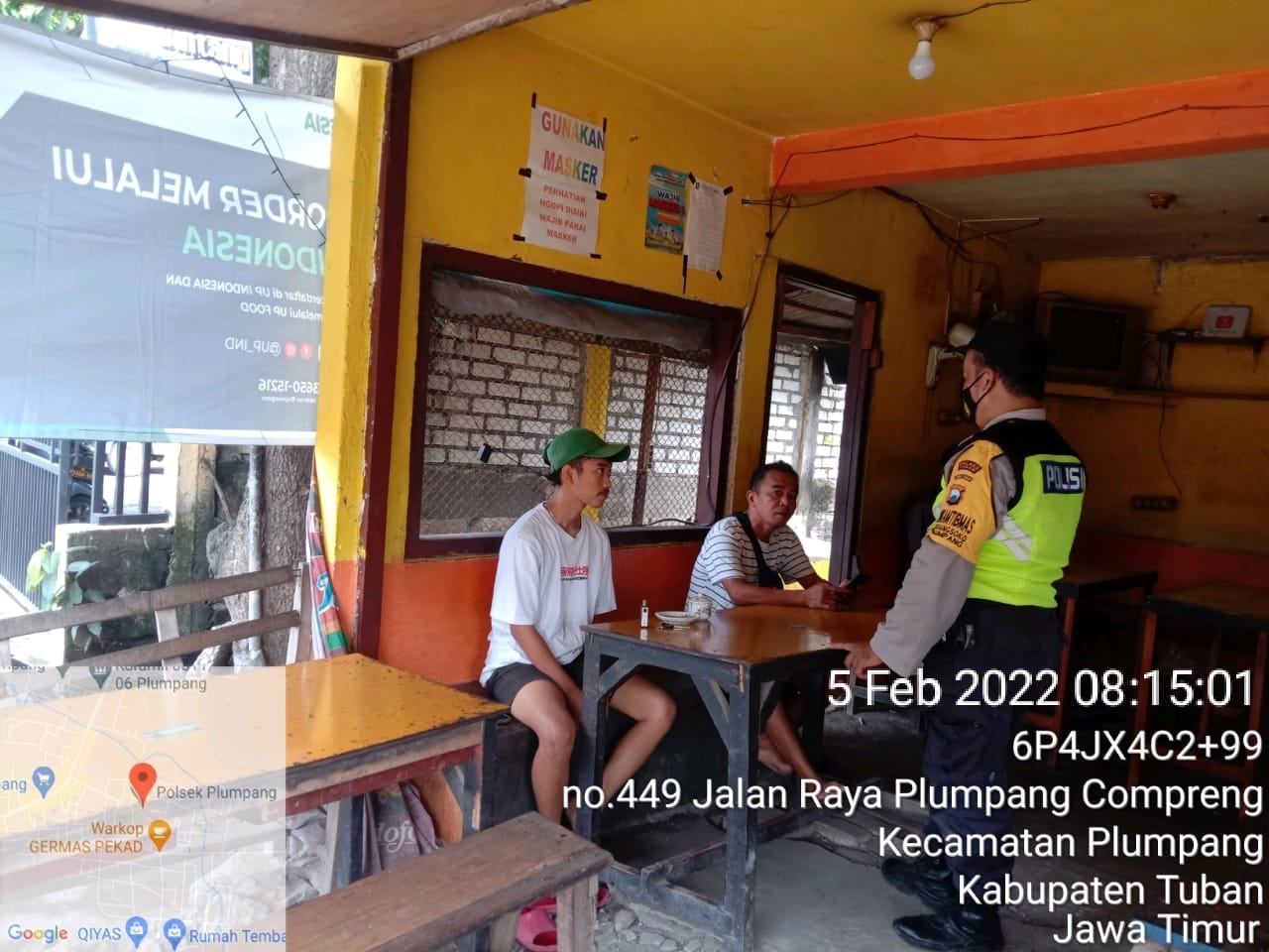 Polres Tuban – Setiap siang dan malam telah menjadi protap dalam upaya menekan angka penyebaran virus Covid 19 petugas dari Polsek Plumpang melaksanakan operasi yustisi pendisiplinan protokol kesehatan kepada masyarakat. Sabtu, (05/02/2022)