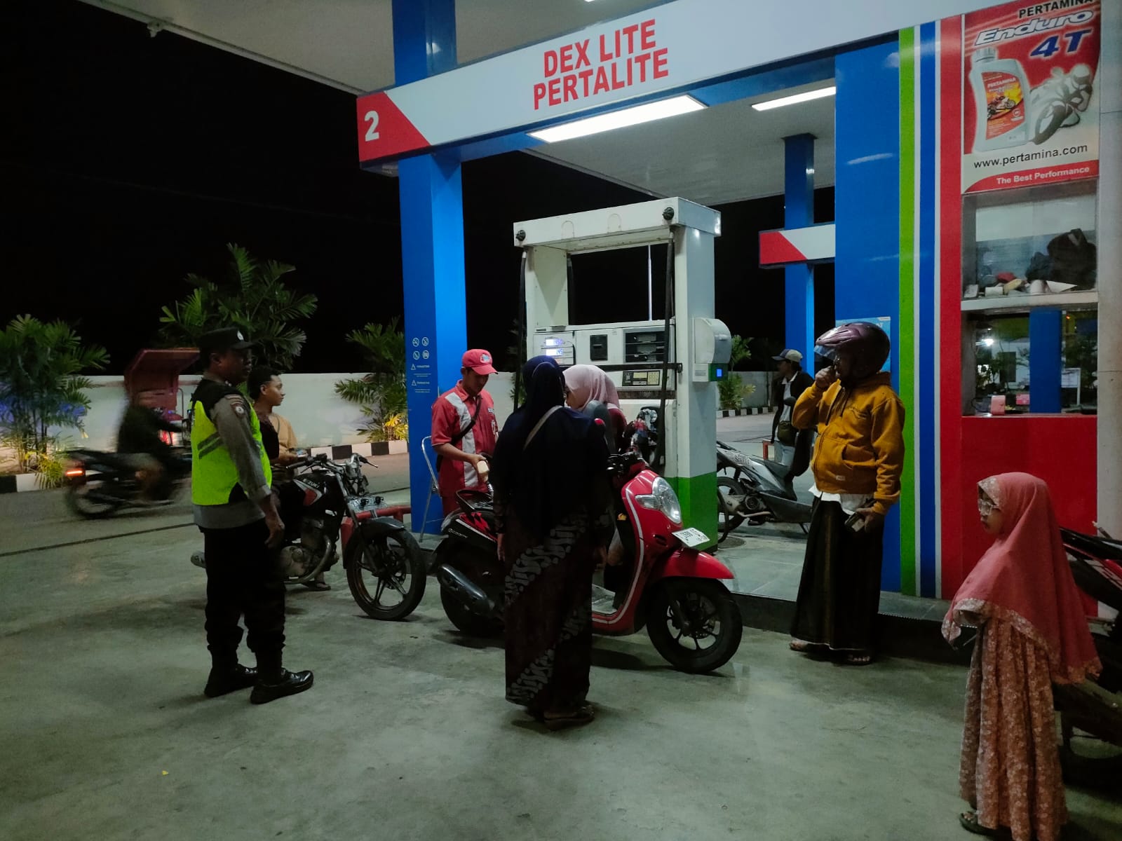 Anggota Polsek Rengel Polres Tuban menggelar patroli obyek vital malam hari ke SPBU yang berada di Desa Pekuwon Kecamatan Rengel Kabupaten Tuban. Sabtu malam, (01/02/2025).