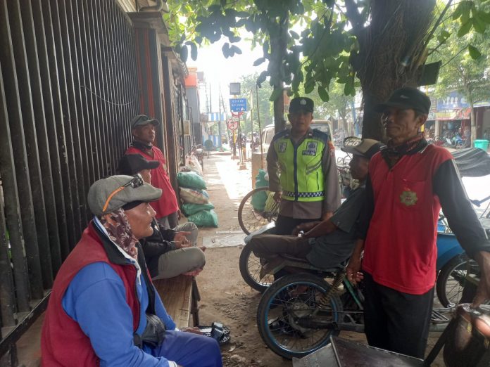 Guna menciptakan Keamanan, Keselamatan, Ketertiban Dan Kelancaran Lalu Lintas, Polsek Rengel Polres Tuban melaksanakan sambang serta memberikan pembinaan dan penyuluhan kepada paguyuban becak Pasar Rengel. Senin, (05/5/2025).