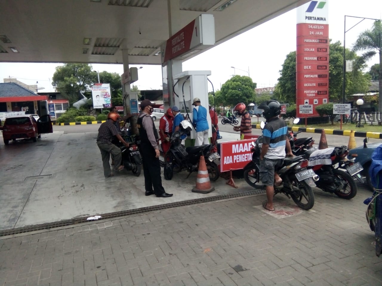 Polsek semanding Polres Tuban melaksanakan Patroli dialogis dengan karyawan Spbu antisipasi keterlambatan stok BBM yang akan berdapak terhadap siskamtibmas serta meresakan pengunjung Spbu