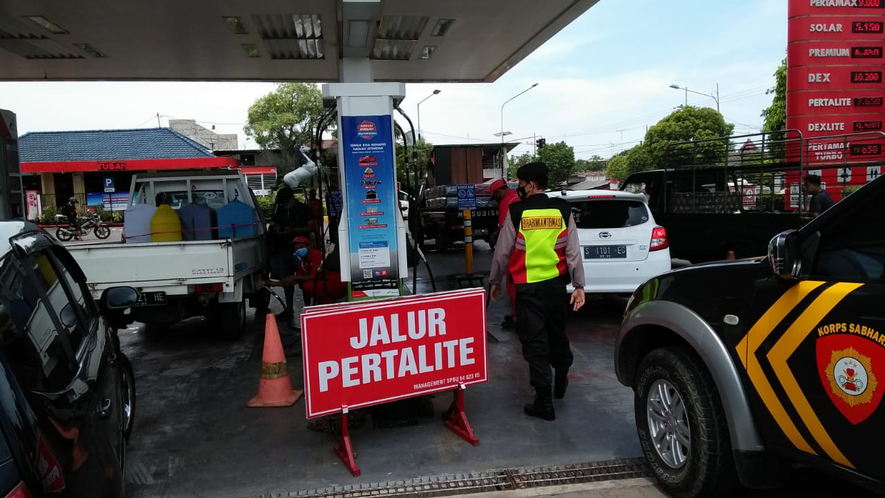 Polsek semanding Polres Tuban melaksanakan Patroli dialogis dengan karyawan Spbu antisipasi keterlambatan stok BBM yang akan berdapak terhadap siskamtibmas serta meresakan pengunjung Spbu