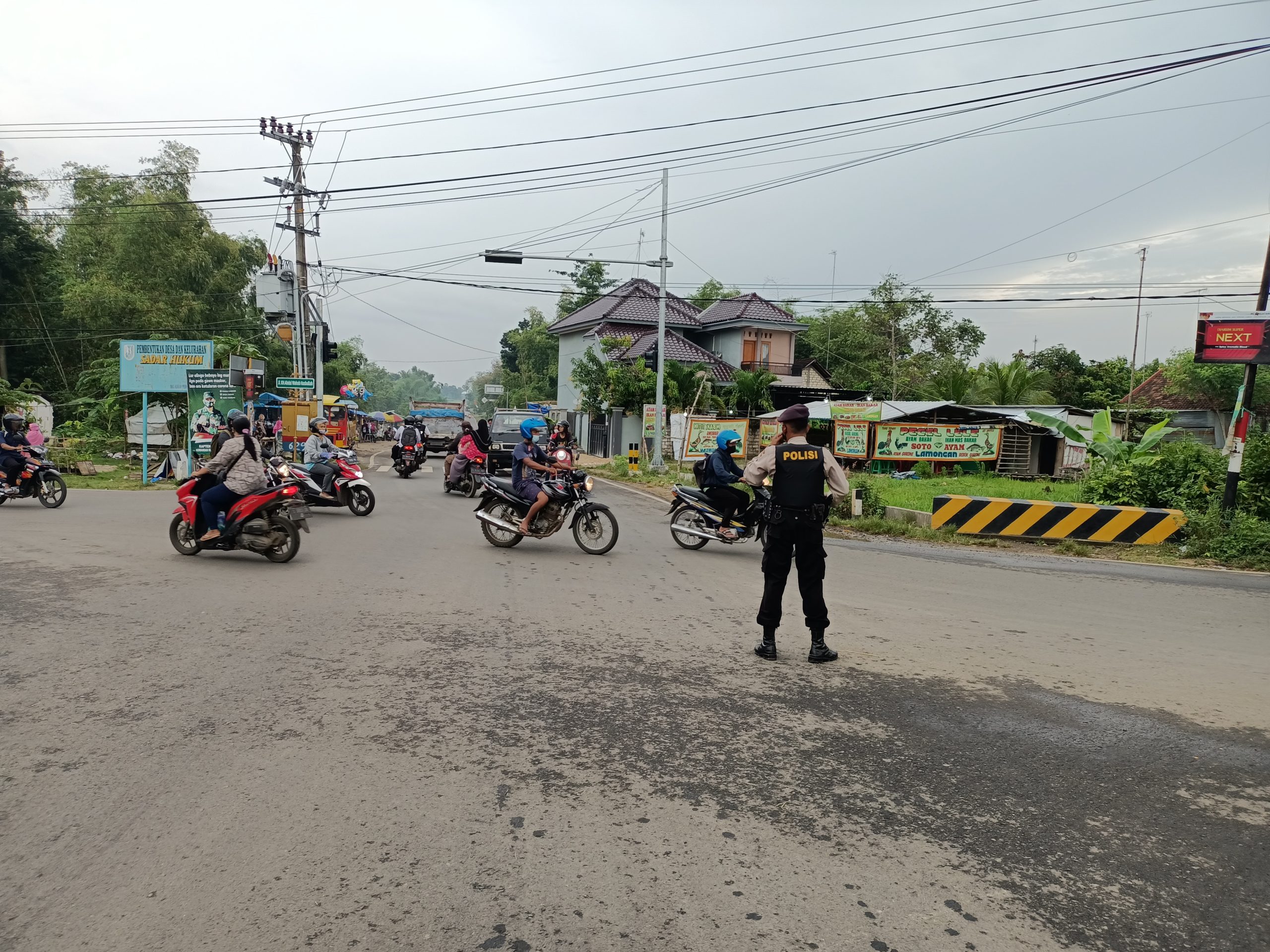 Kapolsek semanding Polres Tuban Iptu Carito SH mengelar anggotanya tukuh titik rawan kecelakan dan kemacetan disimpul jalan guna melaksanakan pengaturan dan memper lambat arus guna antisipasi kecelakaan