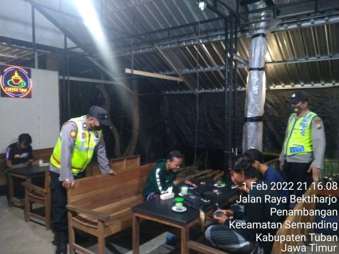 Sabtu, tgl 05/02/2022 pkl 20.00, Polsek Semanding Polres Tuban bersama instansi pemerintah samping TNI dan Pol PP tingkat kec.semanding kab.tuban melaksanakan patroli gabungan guna himbau dan disiplinkan Masyarakat tentang penerapan Prokes guna mencegah dan memutus mata rantai Covid.