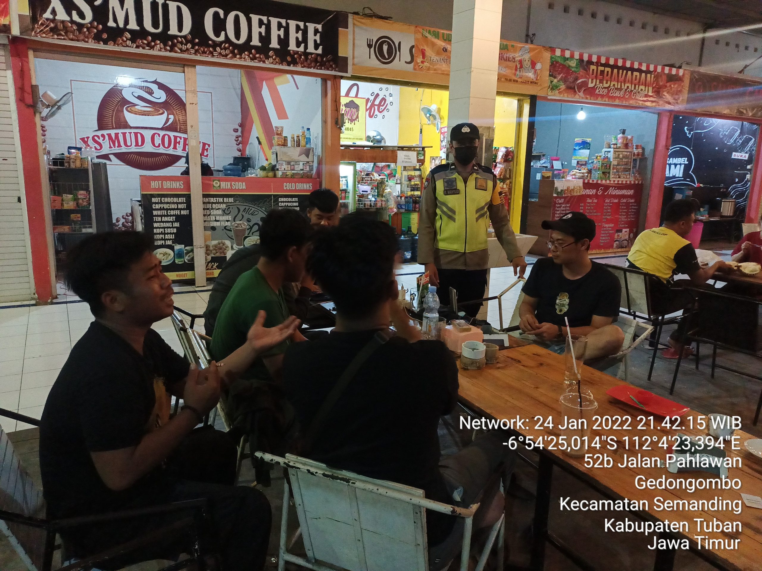 Dipimpin langsung oleh Kapolsek Semanding AKP.Carito, S.H. kegiatan ini menyasar ke tempat keramaian seperti Cafe, Warkop dan Kedai yang buka pada siang hari dan terdapat pengunjung yang banyak tidak patuhi Prokes tidak gunakan masker.
