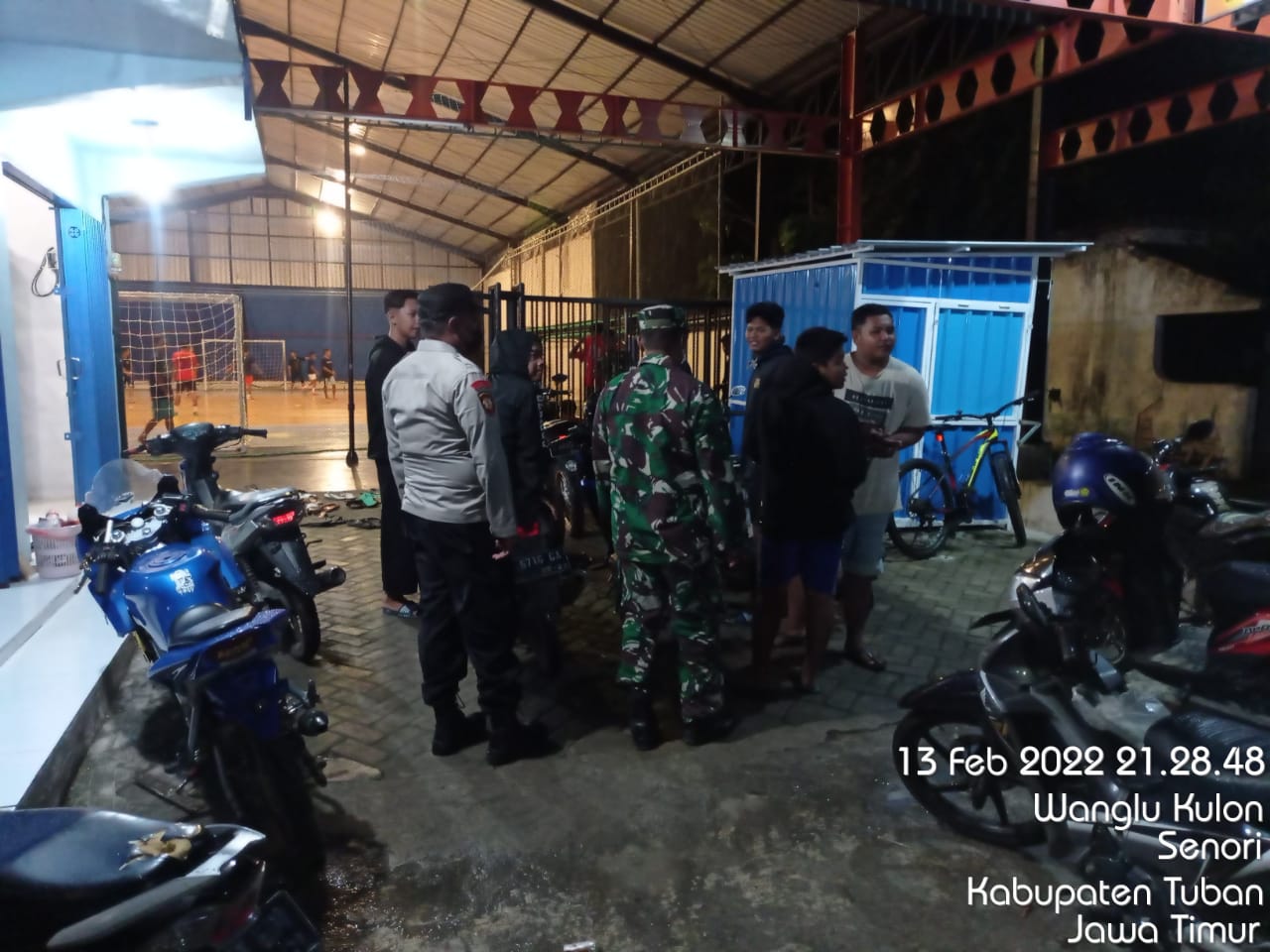 seopini.com – PolresTubanPoldaJatim Senori – Karena tidak taat protokol kesehatan sekolompok pemuda yang sedang asyik nongkrong di arena lapangan futsal Desa Wanglu Kulon Kec, Senori, didatangi oleh tim gabungan dari Polsek Senori Polres Tuban, Koramil Senori dan Satpol PP Kec, Senori, Senin (14/2/2022) malam.