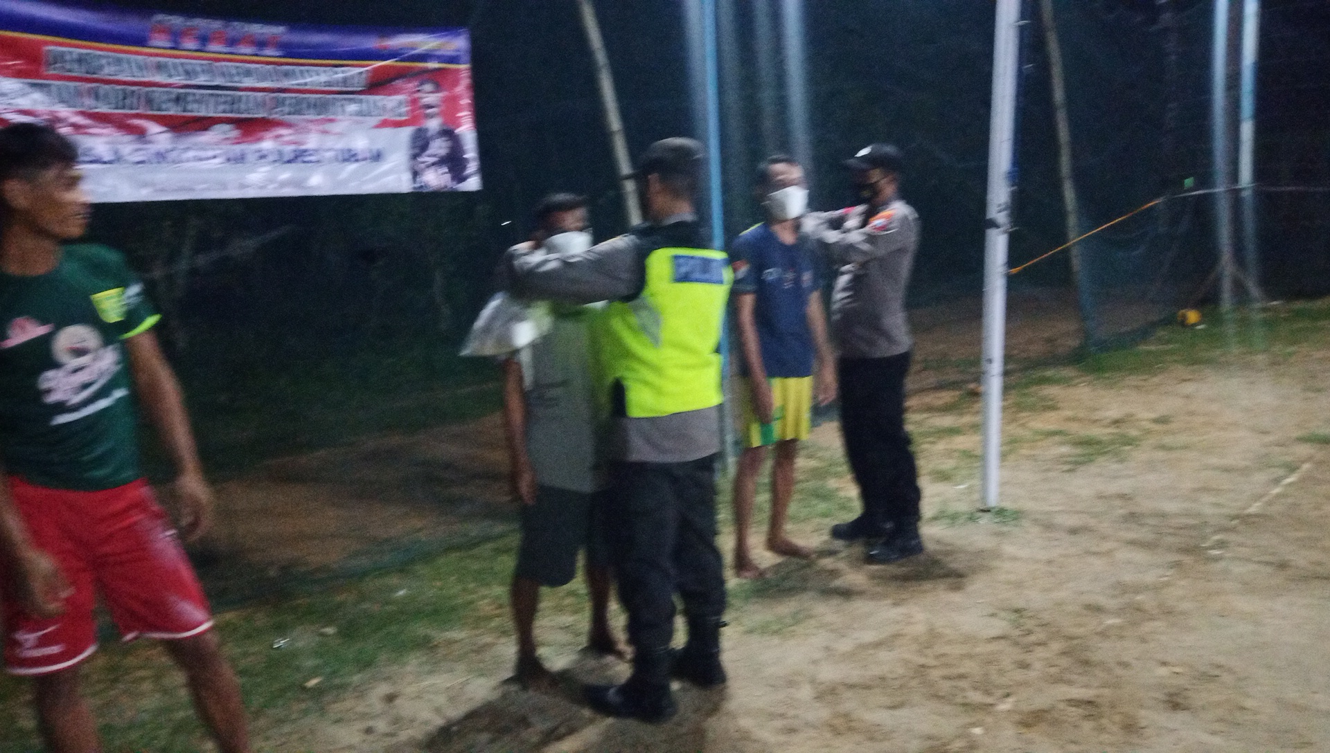 Kegiatan pembagian masker secara gratis tersebut dilakukan oleh Bhabinkamtibmas Desa Lajokidul Bripka Roni Hidayat bersama 1 orang anggota Bripka Sasi Irawan dan diberikan kepada para pemuda yang sedang menonton latihan bola voly