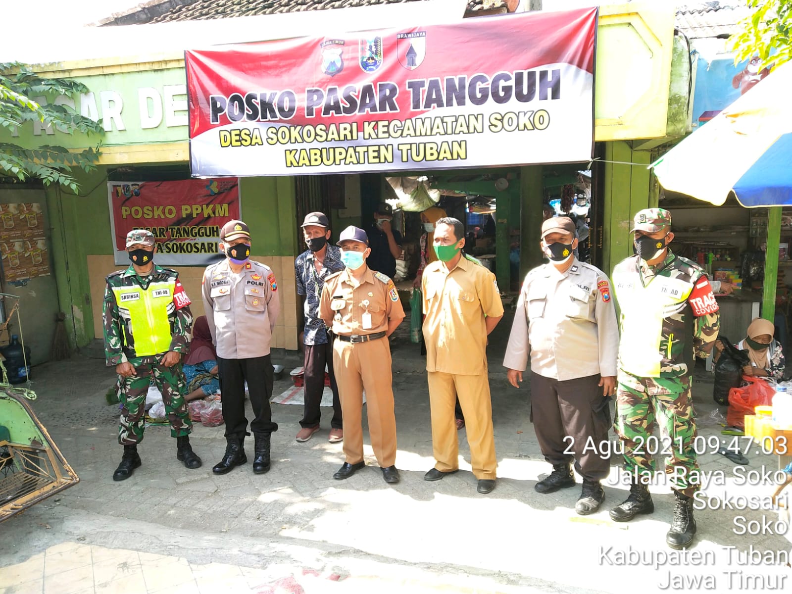 seopini.com – PolresTubanPoldaJatim Polsek Soko Bersam TNI Soko telah mendirikan posko pengamanan untuk mengantisipasi terjadinya kerumunan masyarakat di Pasar Soko, “Menyangkut masalah yang ramai di Pasar Soko, pertama kita dari pihak kepolisian akan menindaklanjuti, kita akan melakukan pendisiplinan masyarakat untuk taat aturan 5M jangan sampai terjadi kerumunan lagi di sana,” ujar Kapolsek Soko Iptu Koirul Amad, SH