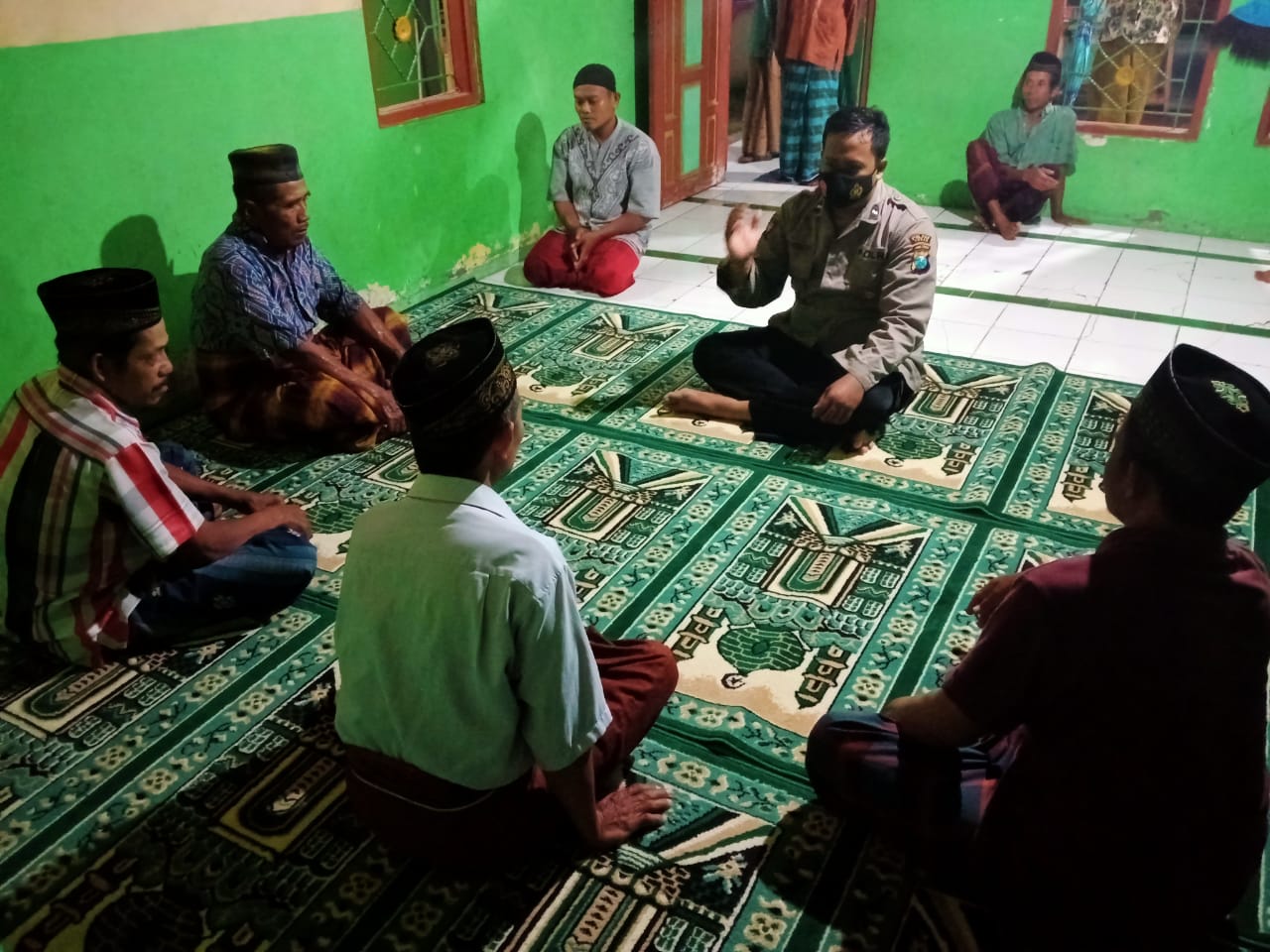 seopini.com-polrestubanpoldajatim Polsek Soko polres Tuban Dalam rangka menjalin silaturahim dan memelihara keamanan dan ketertiban warga masyarakat. Ka SPKT “C” Polsek Soko Briptu Ardi J. W. bersama anggota Polsek Soko patroli dialogis bersama warga masyarakat dusun Soko desa Sokosari, kecamatan Soko di Mushola At- Taqwa Kamis, 06/04