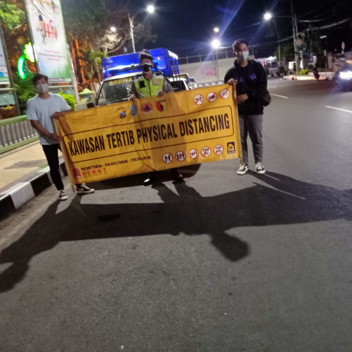 seopini.com-polrestubanpoldajatim untuk memutus penyebaran covid19 di wilayah kabuapaten Tuban khususnya kecamatan Tuban Polsek Tuban tetap menggalakkan patroli physikal distancing terhadap beberapa lokasi untuk menghindari terjadinya kerumunan warga.