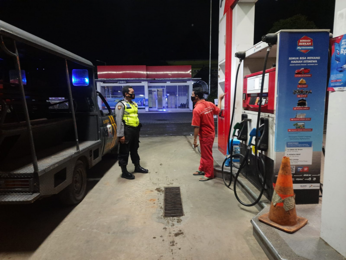 Anggota Polsek Tuban melaksanakan kegiatan patroli dialogis dengan sasaran di SPBU yang terletak di jalan DR. Wahidin Sudiro Husodo turut kelurahan Latsari kecamatan Tuban, Selasa (23/3/2021).