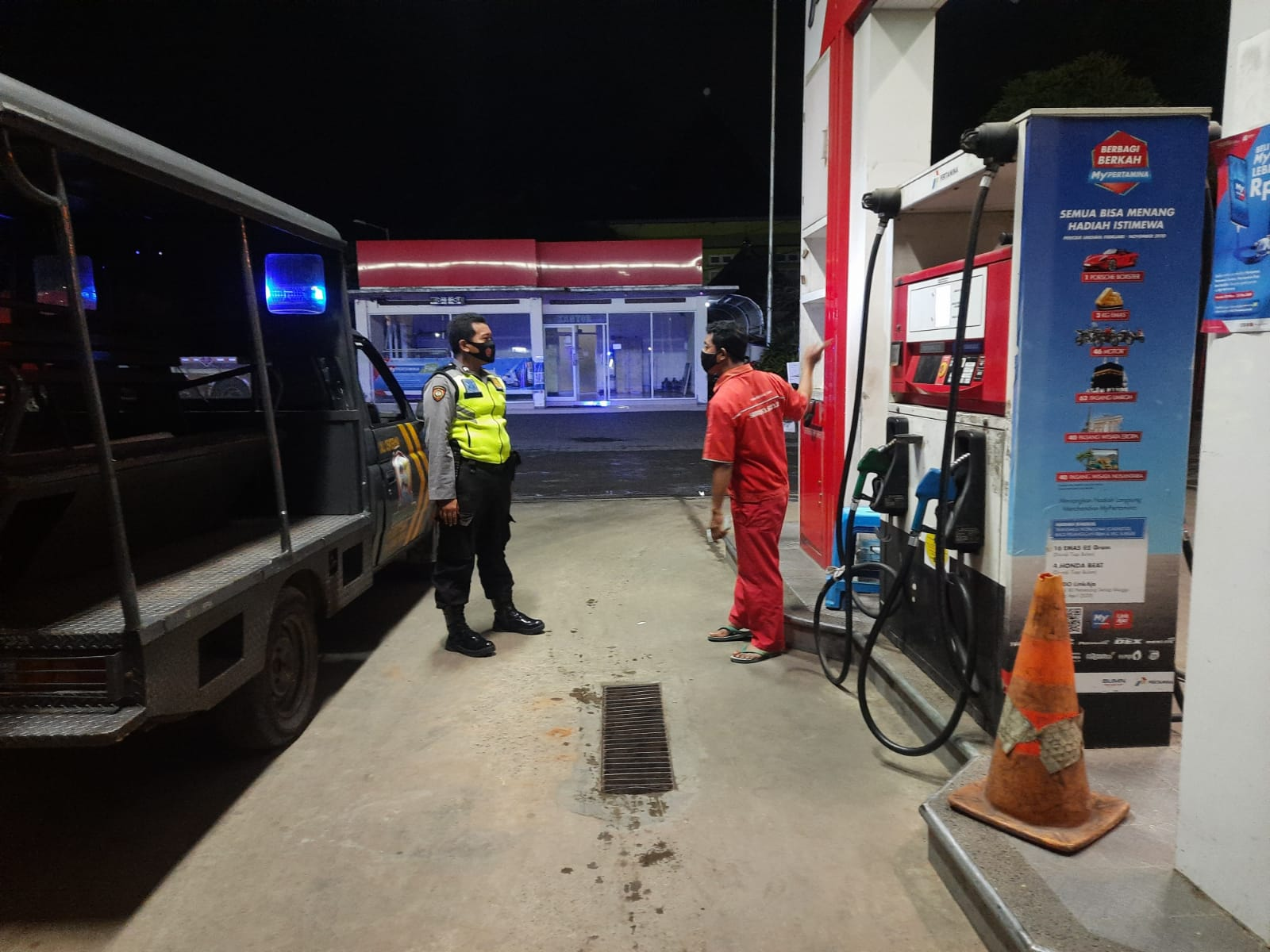 menyampaikan pesan Kamtibmas kepada karyawan SPBU terkait tingkatkan