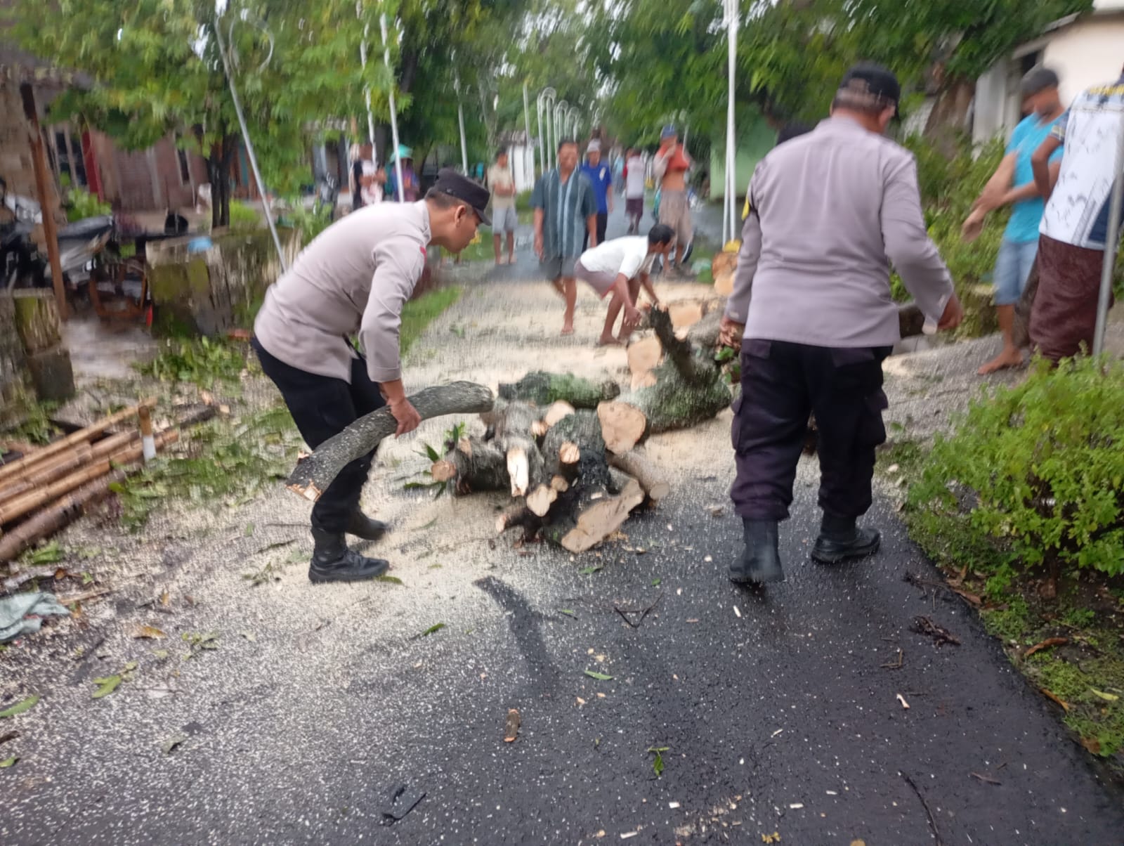 Dengan dibantu warga, anggota Polsek Widang segera melakukan evakuasi dengan gergaji mesin dan dilanjutkan pembersihan.