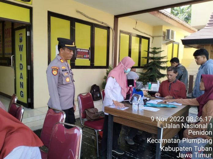Widang – Polsek Widang gelar vaksinasi untuk masyarakat umum, Rabu (09/11/22). Kegiatan ini dilaksanakan dihalaman depan Kantor Polsek Widang.