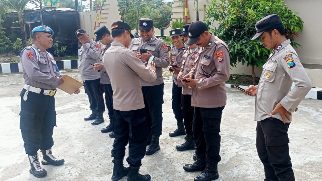 Kanit Provos Polsek Palang, Aiptu Tatag melakukan pengecekan sikap tampang dan kelengkapan dokumen dari seluruh anggota Polsek Palang di Mako Polsek Palqng, Senin (05/02/2025). Pada kesempatan tersebut, Aiptu Tatag memeriksa rambut, kumis, dan jenggot dari seluruh anggota Polsek Palang dan juga memeriksa kelengkapan dokumen, seperti KTP, KTA, SIM, dan STNK.