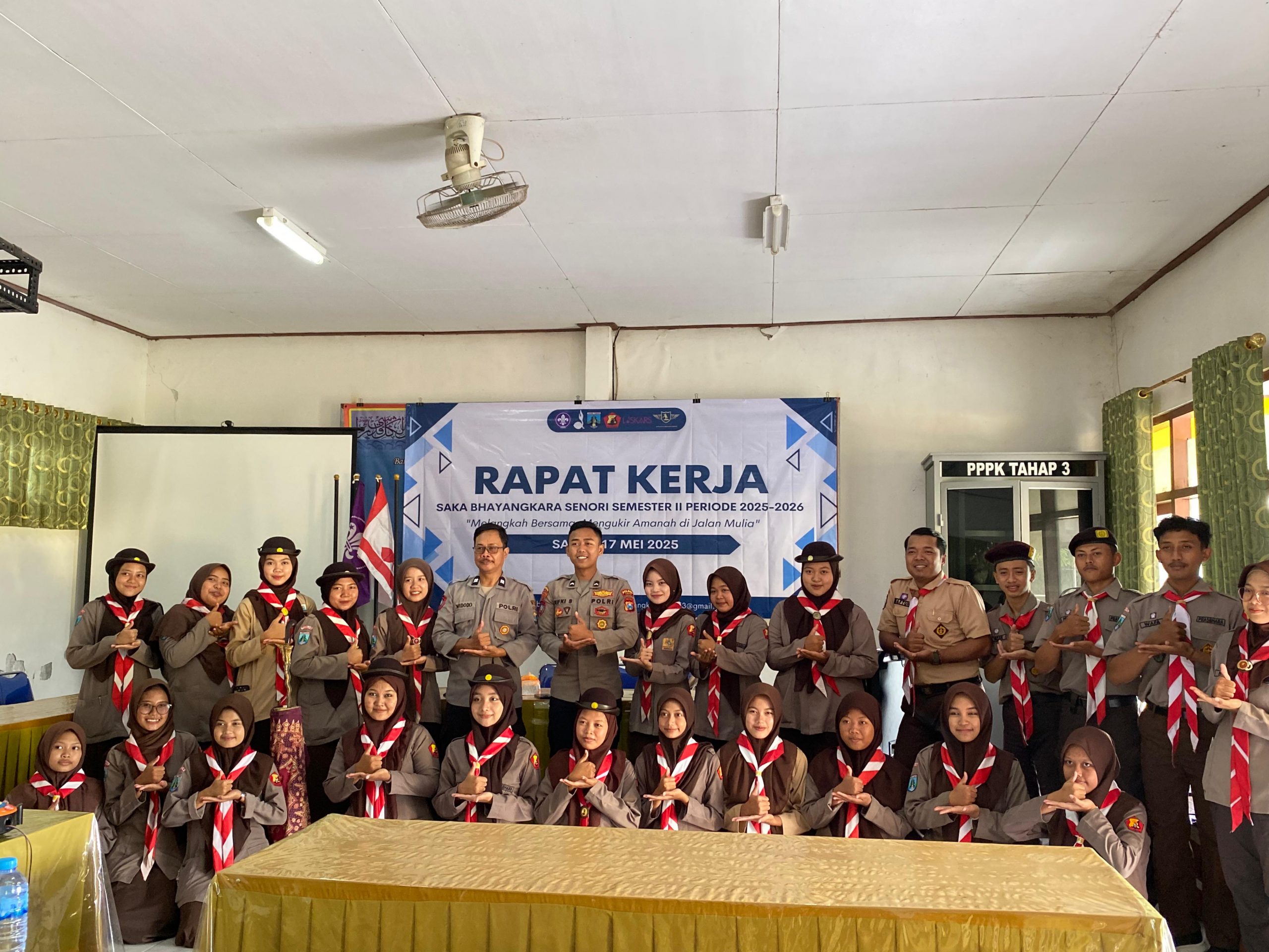 Polsek Senori – Saka Bhayangkara Senori melaksanakan melaksanakan kegiatan rapat kerja Saka Bhayangkara Semester 2 Tahun 2025-2026 di gedung serbaguna Kordik Kecamatan Senori, Senin (19/5/2025) sore.