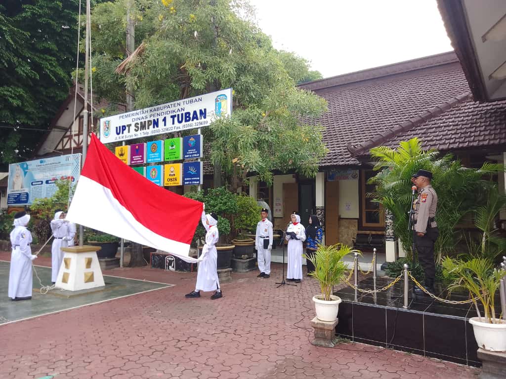 PS Kanit Binmas Polsek Tuban Jadi Pembina Upacara di SMPN 1 Tuban