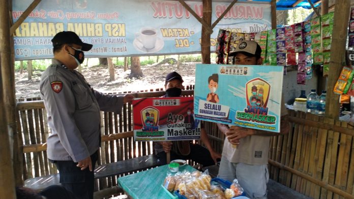 Dalam kegiatan tersebut anggota Polsek Jatirogo Aiptu Dwi H.P., bersama Bripka Edi Susilo mengajak kepada masyarakat untuk selalu mematuhi protokol kesehatan dengan 5M yaitu mencuci tangan, memakai masker, menjaga jarak, menghindari kerumunan dan mengurangi mobilitas, untuk mencegah penyebaran Covid-19. “Kami berharap ditengah Pandemi Covid-19 ini masyarakat mematuhi himbauan pemerintah untuk selalu Disiplin Protokol Kesehatan” Tutur Dwi