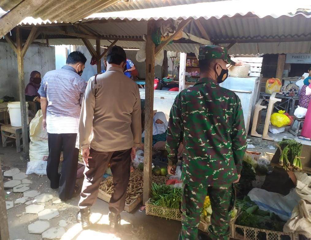 “Pasar menjadi tempat perkumpulan masyarakat yang sedang melakukan jual beli. Kami menghimbau para masyarakat untuk menggunakan masker  dan apabila tidak memiliki masker kesehatan agar menggunakan masker dari kain guna mencegah terjadinya penularan virus covid-19,” kata Aiptu Ahmad Lakin.