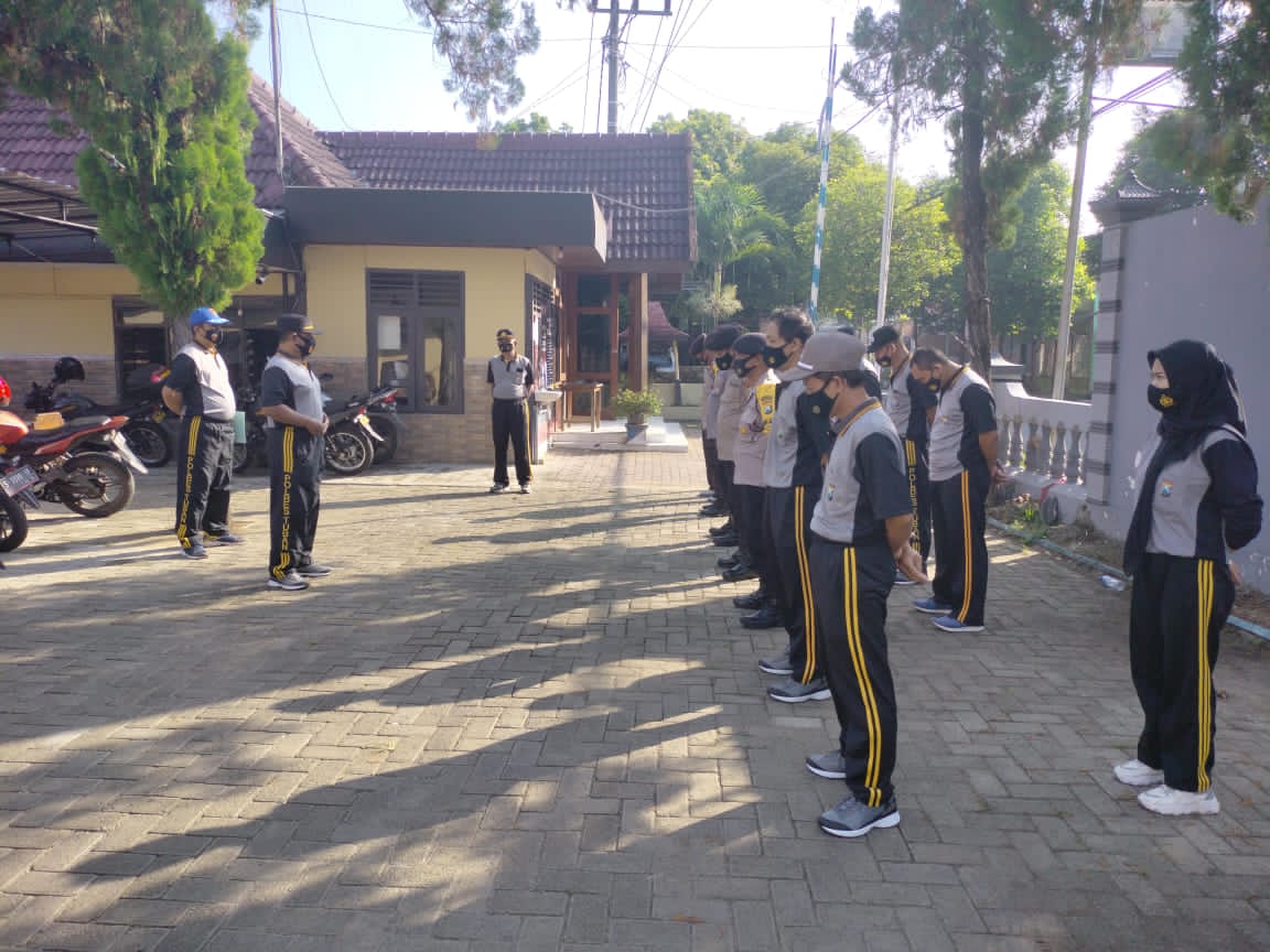 Polri bersama TNI adalah garda terdepan dalam usaha pencegahan penyebaran Covid-19 yang sekarang ini memasuki era adaptasi kebiasaan baru. Oleh karenanya kita pastikan anggota tetap bugar dan sehat agar selalu siap melaksanakan tugas memberikan himbauan ataupun kegiatan lain yang berhubungan dengan pencegahan Covid-19, pungkas Kapolsek.
