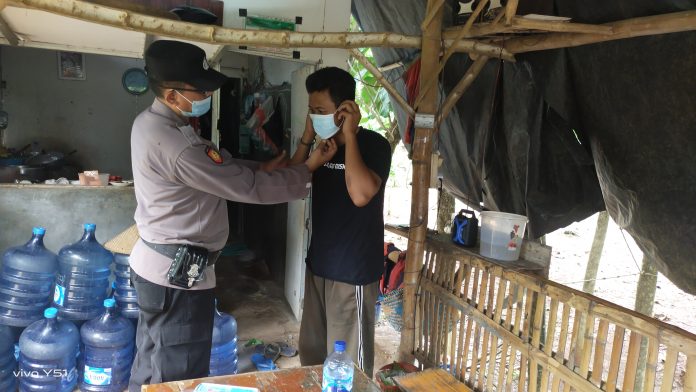 Petugas jaga Aiptu Agung C  selaku anggota polri melayani masyarakat supaya terhindar dari wabah virus covid-19 dan memberi dalam rangka adaptasi kebiasaan baru kepada masyarakat Kepolisian Polsek Tambakboyo menjumpai warga yang tidak memakai masker dan  memberikan himbauan untuk selalu meningkatkan keamanan dan kewaspadaan dilingkungan terhadap ancaman penularan virus covid-19, dan juga membagikan masker