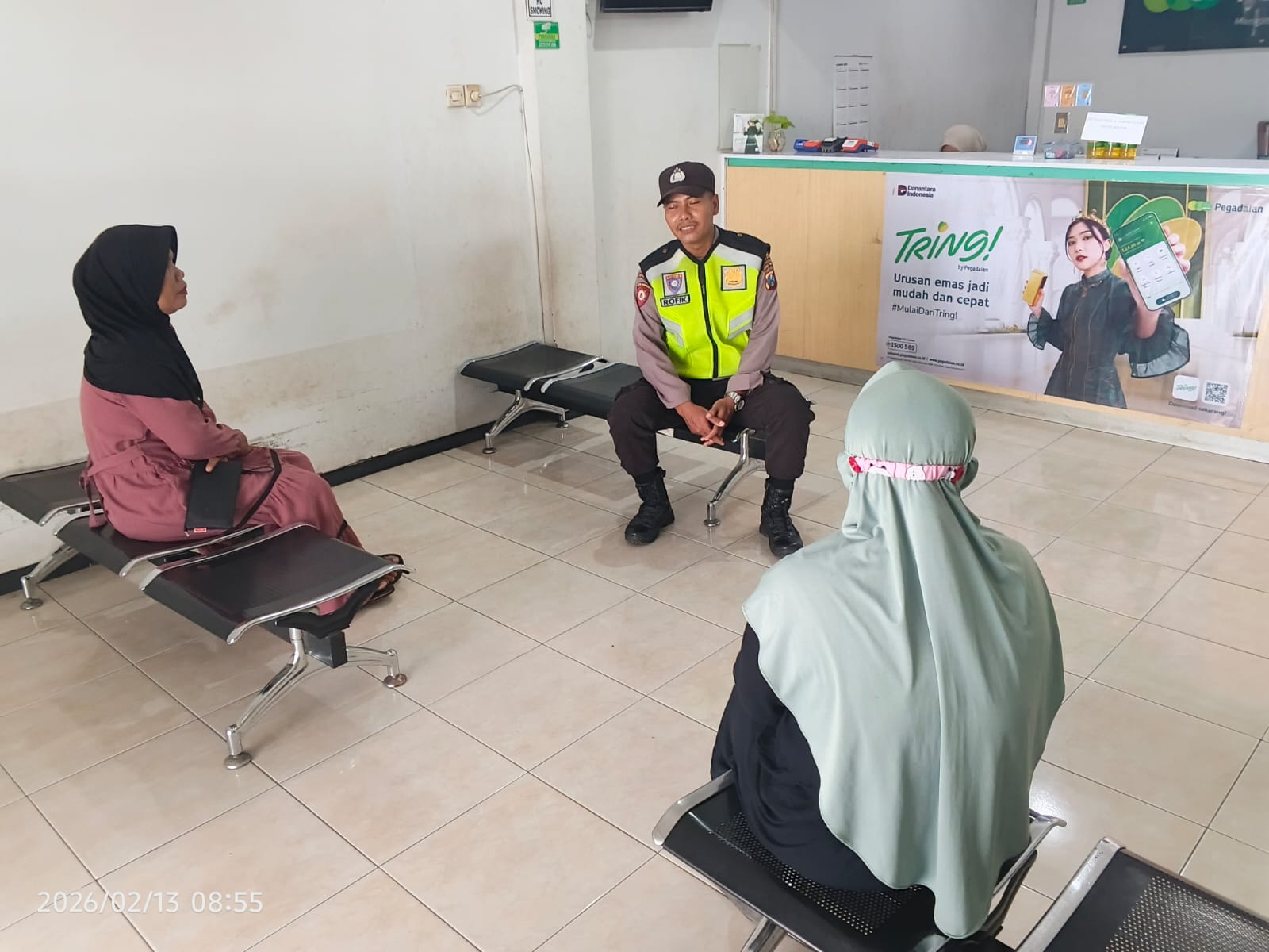 Selain melaksanakan patroli, petugas Bripka M. Rofik., juga menyampaikan himbauan kepada para pengunjung yang datang di Pegadaian, tujuannya agar lebih hati – hati dan waspada terhadap keadaan sekitarnya. Sebab, modus kriminalitas ada berbagai cara yang terkadang tidak pernah diduga oleh korbannya.