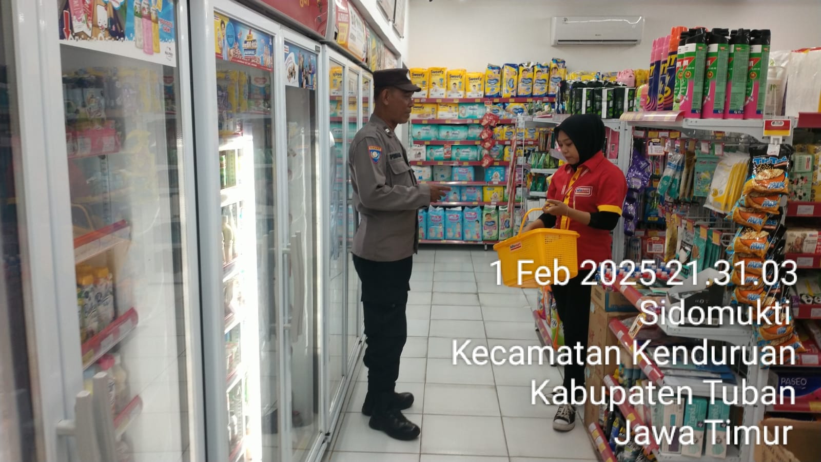 TUBAN, Kenduruan,- Anggota patroli Polsek Kenduruan Polres Tuban melaksanakan sambang dialogis dengan karyawan alfamart di Desa Sidomukti, Sabtu (01/02/2025) malam.