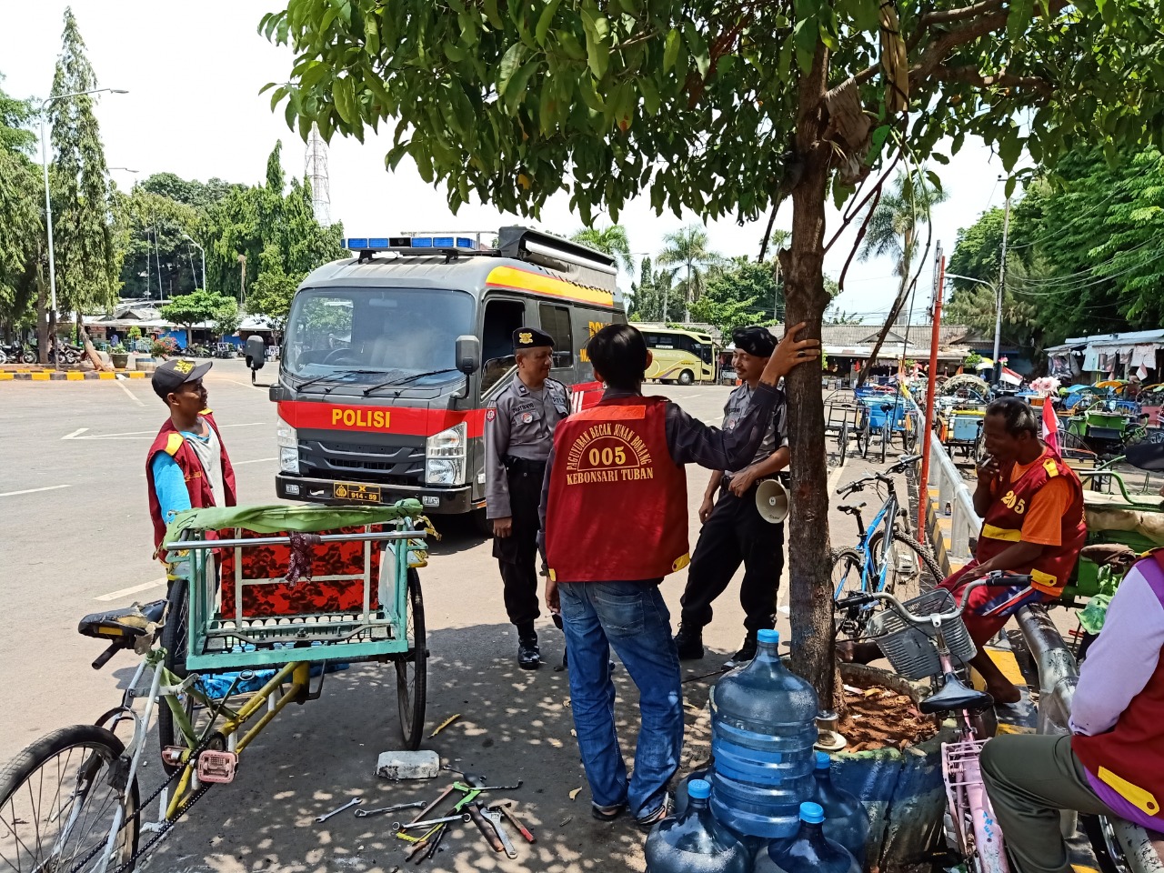 seopini.com – Rabu, 5 Februari 2020 Kanit Bintibmas Satbinmas Polres Tuban Aiptu Pratiknyo dan anggota satbinmas Polres Tuban Bripda Nanda Jepry Adi L melaksanakan kegiatan sambang dan silaturahmi kepada para tukang becak wisata Makam Sunan BOnang Tuban dan titipkan pesan pesan kamtibmas dalam rangka cegah dan tangkal radikalisme di kalangan masyarakat. tak hanya itu Kanit Bintibmas satbinmas Polres Tuban juga berpesan kepada para tukang becak agar tidak menggunakan narkoba saat mengemudikan becaknya serta mengajak para tukang becak untuk berperan aktif menjaga keamanan disekitar lingkungan