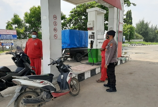 seopini.com-polrestubanpoldajatim Patroli dilakukan personil Polsek Tambakboyo , Polres Tuban di SPBU desa Merkawang Kecamatan Tambakboyo, Jum’at , (5/3/2021) siang