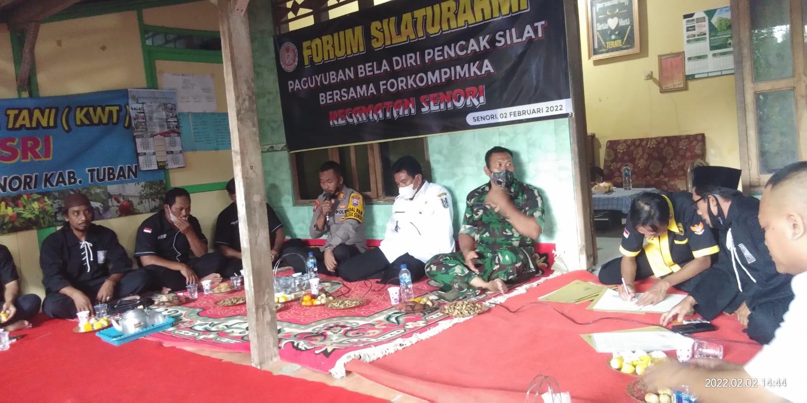 Senori – Kapolsek Senori Polres Tuban AKP Ali Kanapi, S.H., menyelenggarakan acara silaturahmi bersama Paguyuban Pencak Silat Kecamatan Senori dalam rangka mewujudkan siskamtibmas yang aman dan kondusif di wilayah Kecamatan Senori Kab, Tuban, Rabu (2/2/2022) siang.