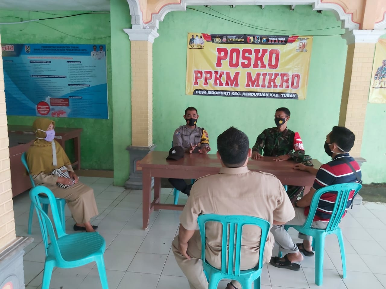 seopini.com-polrestubanpoldajatim Upaya cegah persebaran virus corona dan ciptakan kamtibmas aman kondusif, Bhabinkamtibmas Desa Sidomukti Polsek Kenduruan Polres Tuban Aiptu Poniman bersama Babinsa Desa Sidomukti