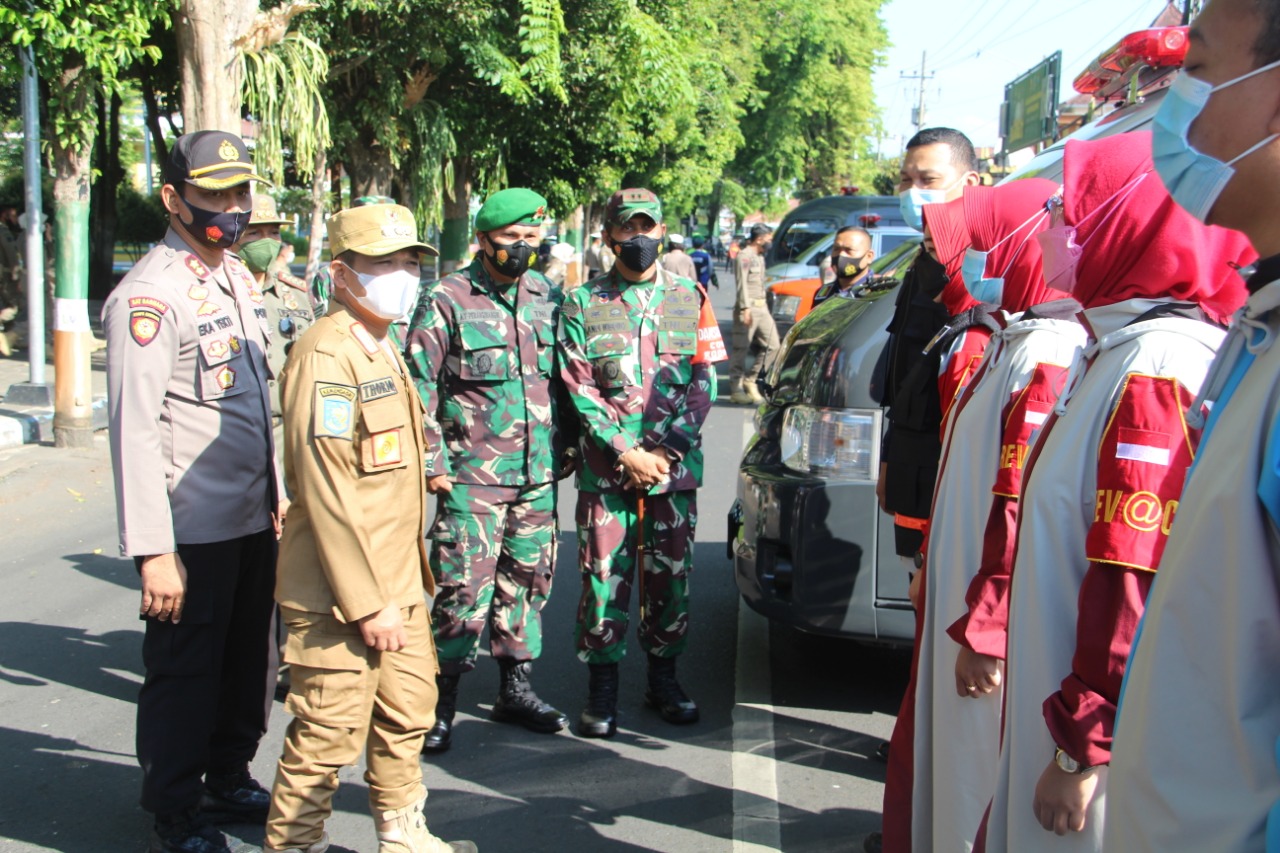 Bertindak selaku Pimpinan apel Bupati Lumajang Sdr. H. Thoriqul Haq, dengan peserta apel 1 SSK Pa Staf, Danramil dan anggota Kodim 0821, 1 SST Yonif 527, 1 SST Polres Lumajang, 1 SST Satpol PP Kab. Lumajang, SST Dishub Kab. Lumajang, 1 SST Polkes dan Dinkes Kab. Lumajang, 1 SST BPBD dan PMI Kab. Lumajang, Kendaraan Tim Satgas Covid-19 Kab. Lumajang 9 unit Ambulans Dinkes, 1 unit RS Bhayangkara, 1 unit TRC BPBD, 2 unit patroli Satpol PP, 1 unit ambulans Kodim 0821 dan 1 unit Dokkes Polres Lumajang.