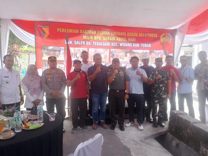 Widang – Letkol Inf. Dicky Purwanto (red-Dandim Tuban) meresmikan bantuan rumah swadaya Kodim 0811 kepada warga bernama Suradi Abdul Hadi asal Desa Tegalsari Kecamatan Widang Kabupaten Tuban Jawa Timur pada Rabu (30/4/2025) siang.