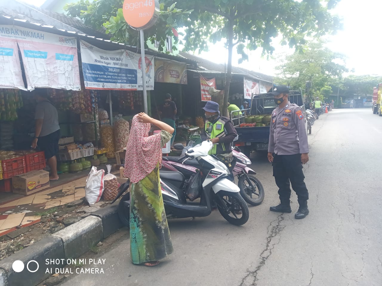 Dengan berjalan kaki terlihat personil Polsek Singgahan Polres Tuban blusukan di seputaran pasar sambil sesekali berdialogis dengan para pedagang, pembelian maupun tukang parkir guna menyampaikan pesan kamtibmas.