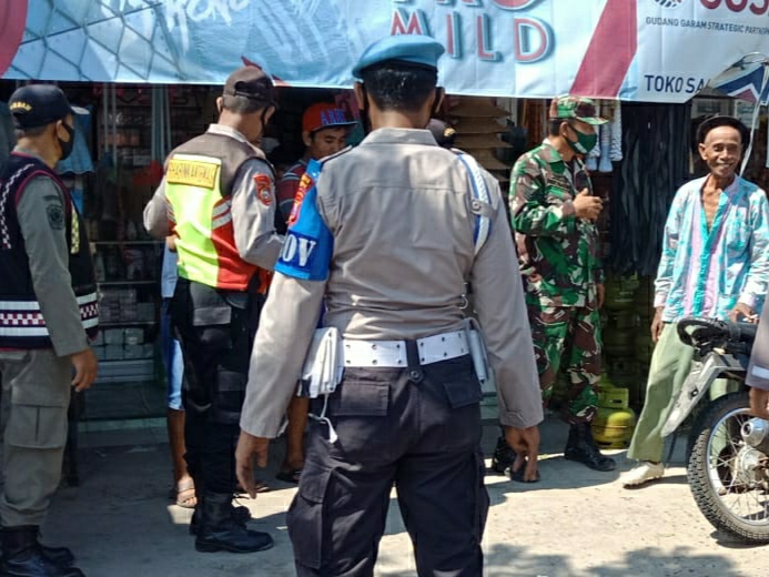 Kenduruan – Tekan laju penyebaran Virus Corona (Covid-19) dan pendisiplinan Protokol Kesehatan kepada warga masyarakat, Polsek Kenduruan melaksanakan patroli giat Yustisi Protokol Kesehatan bersama TNI Koramil Kenduruan dan Satpol PP Kec. Kenduruan. Sabtu (10/4/2021) pagi.