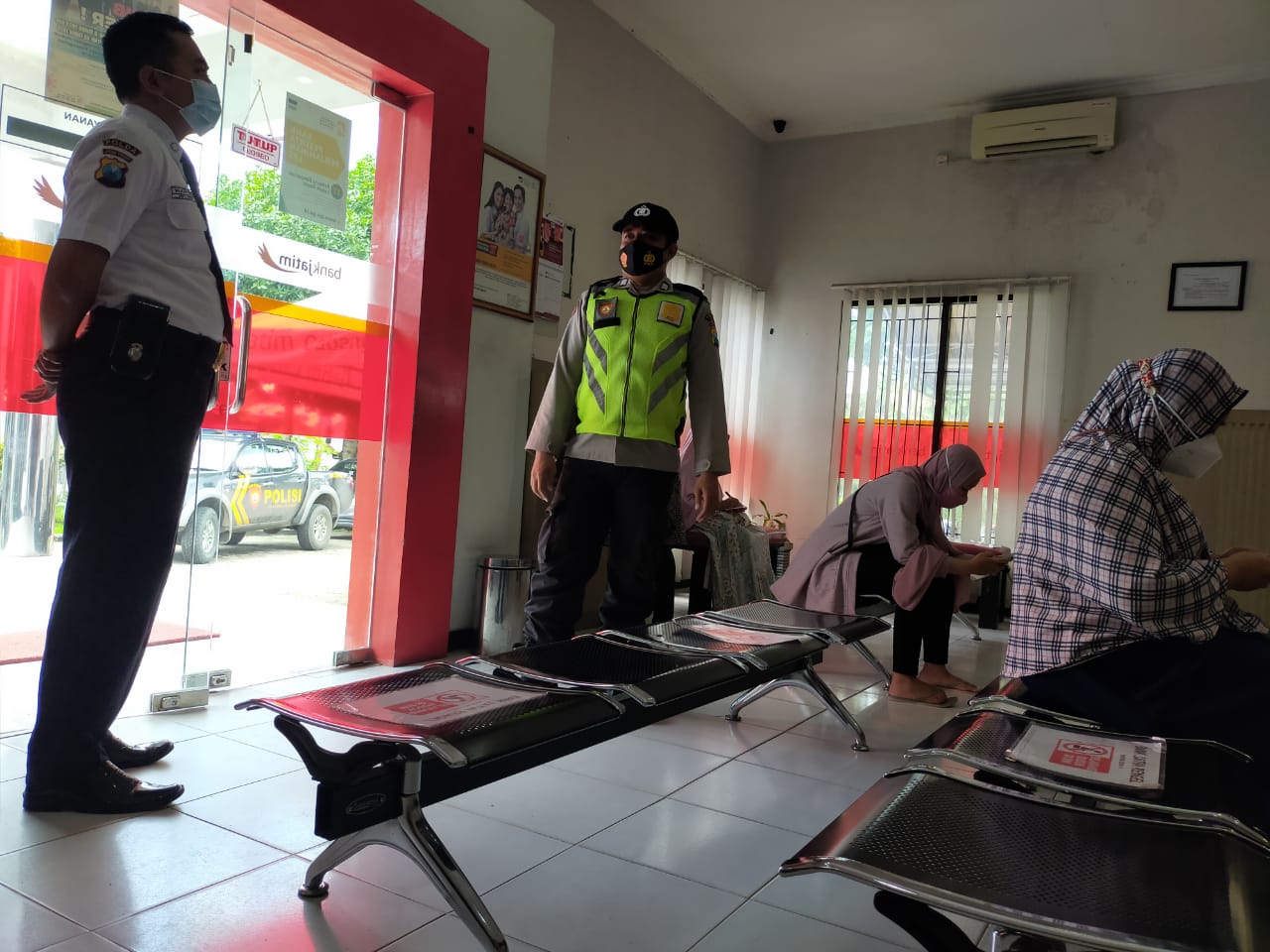 Masih dalam masa pandemi Covid 19, aparat kepolisian mengingatkan kepada pihak bank maupun masyarakat untuk sama-sama tetap disiplin menjalankan protokol kesehatan dengan memakai masker, jaga jarak dan rajin cuci tangan.