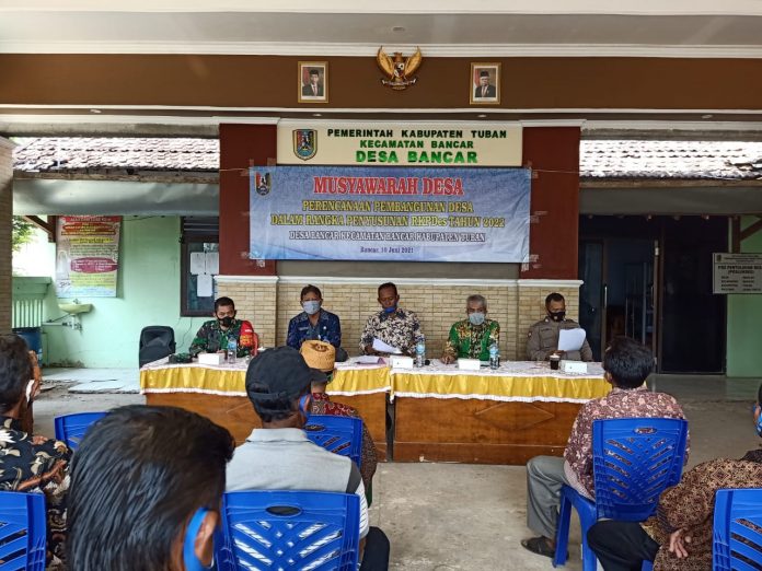 seopini.com – PolresTubanPoldaJatim Cuaca cerah di siang hari dilaksanakan kegiatan musyarawah Desa “MUSDES” Bancar dalam rangka penyusunan Perencanaan Pembangunan Desa Tahun 2022 bertempat di balai desa Bancar kec Bancar Tuban. Jum’at 11 Juni 2021.