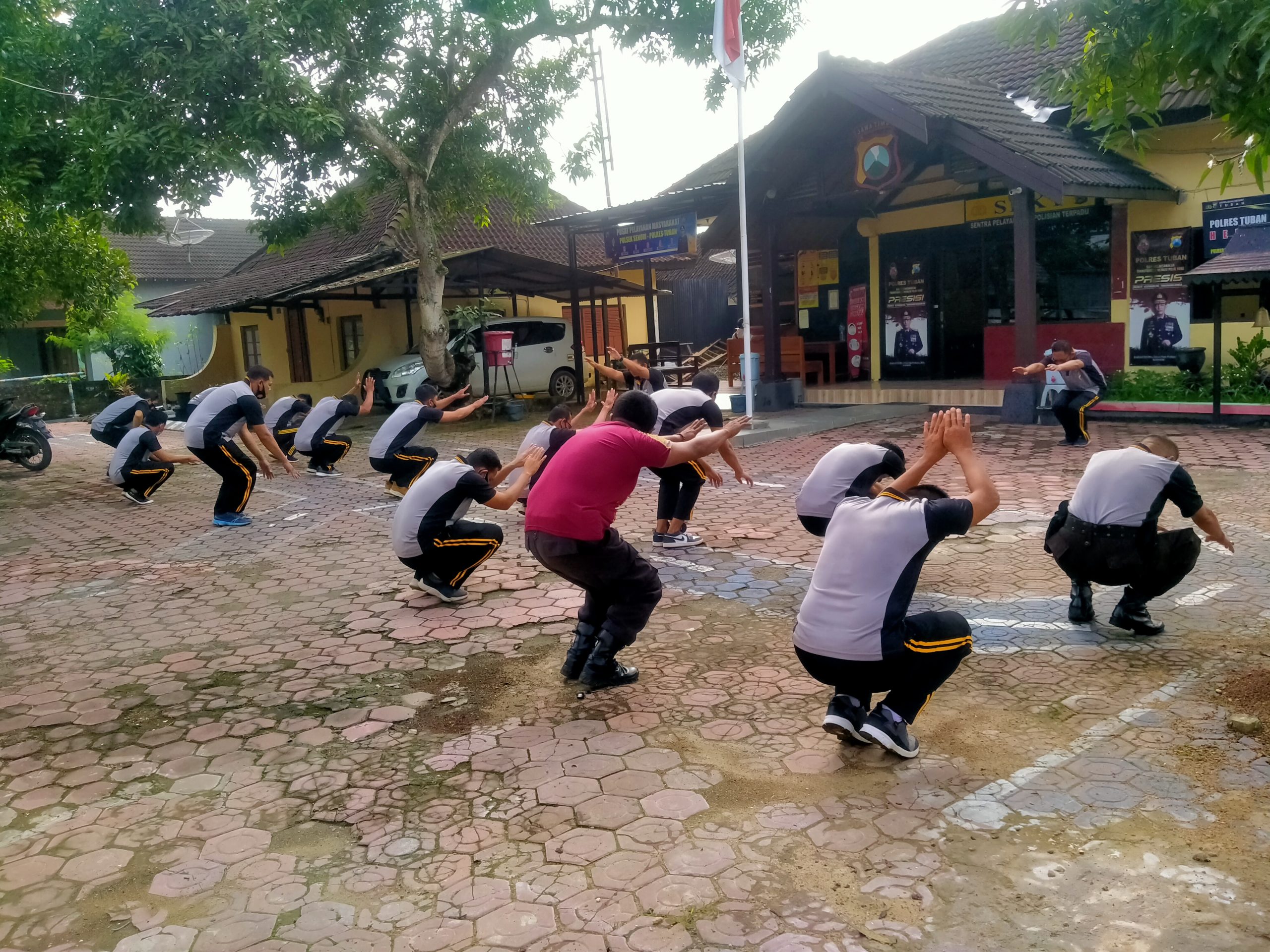 seopini.com-polrestubanpoldajatim Guna menjaga kesehatan dan kebugaran badan seluruh anggota Polsek Senori. Kapolsek Senori Polres Tuban Polda Jawa Timur Iptu Suganda, S.H., memimpin anggota dan ASN Polsek Senori Polres Tuban melaksanakan olah raga bersama di halaman Mapolsek Senori, Jum’at (5/3/2021) pagi.
