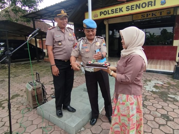 Senori – Kapolsek Senori Polres Tuban Polda Jatim Iptu Sudjarwo, uu., medapatkan Surprise dari Ketua Ranting Bhayangkari Senori bersama anggota Polsek Senori dalam ulang Tahun ke-56 yang dilaksanakan di halaman Mapolsek Senori, Senin (9/2/2026) pagi.