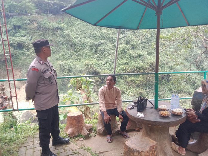 anggota Polsek Singgahan melakukan patroli di tempat wisata air terjun nglirip, minggu, (27/07/2025).