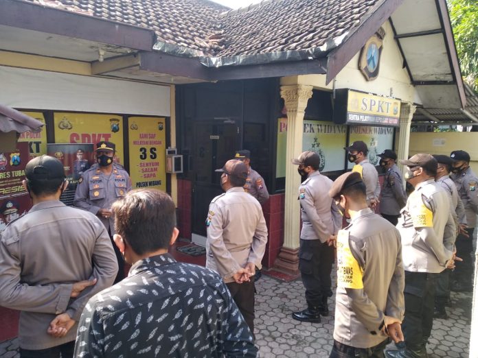 Bhabinkamtimas harus rutin dan rajin turun ke desa menyambangi warga binaanya. Demikian penggalan kalimat yang disampaikan oleh Waka Polsek Widang IPTU Ali Mas’ud, S.H., saat memberi arahan Apel pagi, Kamis (15/04/2021). Silahkan, setelah selesai apel pagi ini melaksanakan giat sambang di desa, sampaikan pesan Kamtibmas terkait keamanan lingkungan dan juga pentingnya penerapanan protokol kesehatan dalam upaya mendukung pemerintah menekan penyebaran Covid’19. Selain itu, lakukan Imbauan pula kepada para pemilik kios dan juga warung agar tidak menjual makanan dan minuman kadaluarsa karena dapat membahayakan para konsumennya, demikian pula terhadap Miras, supaya tidak menyimpan, menjual maupun membuat, ” ujar Waka Polsek. Lakukan dialog langsung dengan pedagang maupun pembeli dan memberikan pesan-pesan Kamtibmas kepada warga aga