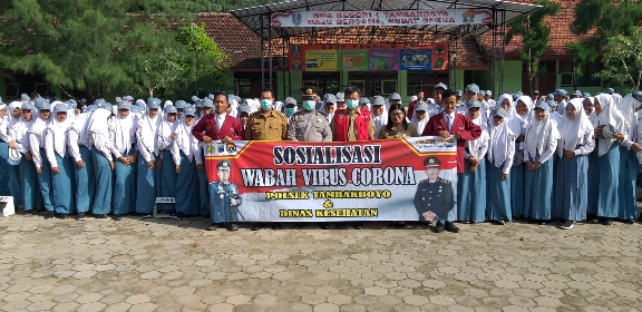 Dalam Hal ini Waka Polsek Tambakboyo Iptu Suparto, S.H. bersama Kanit Binmas Aiptu Imam Heri dengan Tim Kesehatan dari Puskesmas Tambakboyo  memberikan sosialisasi Cara Pencegahan Virus Corona di SMAN 1 Tambakboyo Kegiatan ini dilakukan disela upacara bendera pagi ini. Senin (03/02/2020).